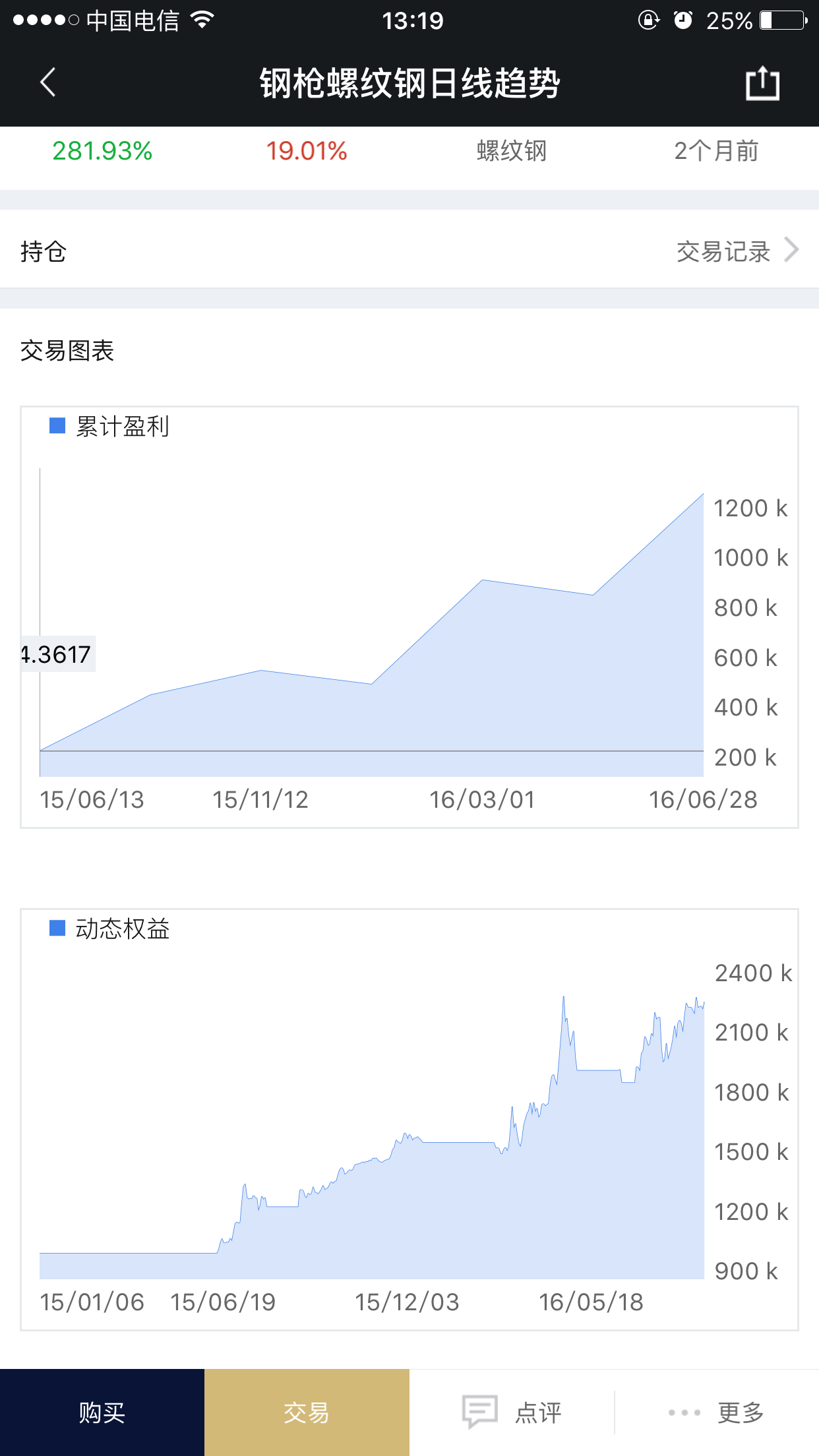 投资者可以在每个交易策略详情中,看到策略的累计盈利、动态权益等概况。